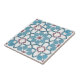 Hand painted geometric teal blue moroccan ethnic ceramic tile