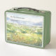This is a standard metal lunchbox that appears to work just fine. We designed this box ourselves with an uploaded photo and custom text on the front and back. It looks absolutely beautiful except the front of the lunchbox is not centered like it shows in the photo. The print borders don't align with the inset flat part of the box where the preview photo online showed it perfectly centered in there. The back looks nice and centered though.