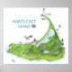 Nantucket poster - Nantucket Island Watercolor Map featuring the island's highlights such as Sankaty Head Light, Great Point Lighthouse, Brant Point Lighthouse, The Old Mill, beaches and much more!