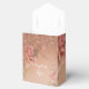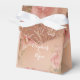 Beautiful favour box with beautiful oink roses and gold filigree accents. This lovely box is perfect for Weddings, Bar Mitzvah, Sweet Sixteen, or Quinceanera. Select your favourite font and colour. Bow can be changed to purple, black or pink. ALL DESIGN ELEMENTS ARE PRINTED. NO ACTUAL METALLIC FILIGREE