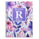 Hand painted purple flowers personalised monogram notebook