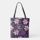 Hand painted purple flowers personalised monogram tote bag