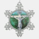 Hand Painted Whites CRUCIFIX Snowflake Pewter Christmas Ornament