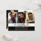 Three thin faux metallic gold lines accent the hand-lettered title GRADUATE and graduating year. The black block of colour on the front is editable by changing the background colour to coordinate with your photos, school colours or graduation party theme colours. Showcase four of your graduate's senior pictures (three on the front) and one on the back along with your graduation party invitation details.