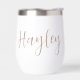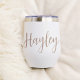 Get the party started with these beautiful personalised wine tumblers that are perfect for bachelorette parties, bridesmaids, or any occasion! Design features a name in neutral tan beige handwritten style cursive script typography.
