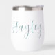 Get the party started with these beautiful personalised wine tumblers that are perfect for bachelorette parties, bridesmaids, or any occasion! Design features a name in turquoise teal aqua handwritten style cursive script typography.