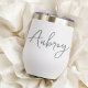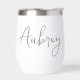 Get the party started with these beautiful personalised wine tumblers that are perfect for bachelorette parties, bridesmaids, or any occasion! Design features a name in dusty sage green handwritten style cursive script typography.