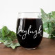 Get the party started with these beautiful personalised stemless wine glasses that are perfect for bachelorette parties, bridesmaids, or any occasion! Design features a name in white handwritten style cursive script typography.
