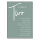 Simple and chic table number cards in Eucalyptus Green and white make an elegant statement at your wedding or event. Design features "table [number]" in an eyecatching mix of classic serif and handwritten script lettering, with individual guest names beneath. Design repeats on both sides. Individually numbered cards sold separately; order each table number individually from our collection.