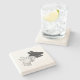 The coasters are gorgeous, a quality feel and heavy weight. They look like a precious archeological find. A rustic stone juxtaposed with a modern floral black and white print. I like the way the print goes slightly imperfect on the cut stone edges giving them a kind-of natural beauty.