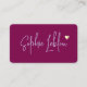 Wine background colour with fields for name (pale purple script font-style), profession (skincare specialist or any other occupation), contact number, email and address... for a stylish first impression... with the image of a small heart of love.