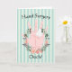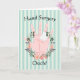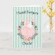 Get well card for hand surgery, with an illustration of a hand in the centre of a floral wreath on a striped background. Thanks to Creative Fabrica, and Pixabay for some of the elements used in design. The words can be changed on both the front and inside of the card.