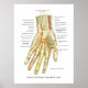 Vintage hand and wrist anatomical chart illustration of the Palm of Left Hand: Superficial Layer. Muscles, arteries and nerves.