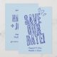 This modern & retro funky minimalist Wedding Save The Date Template is great for you. If you are looking for a pretty, elegant, and easy-to-customise Wedding Save The Date Template. A very elegant simple blue script wedding save the date. Which features minimal blue handwritten save the date on a plain sky blue clean background. And hand-drawn crossed hearts to symbolise to the fun and love to come. Grab this stylish wedding save the date and make your invites truly engaged.