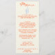 A colourful retro funky modern vivid red wedding dinner menu. Which features chic template design of boho vintage milky beige background and orange typography and hand written menu in orange. And hand drawn champagne glass and bottle in sky blue colour . . Perfect and matching with the whole suite.