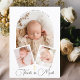 Our gorgeous baptism thank you card is a beautiful keepsake designed to capture the precious memory of your baby's special day. This card features three custom photos of your little one: a main photo displayed in the centre within an elegant white arch frame, with your baby's name showcased at the top in a graceful, semicircle font.