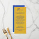 A colorful retro funky modern blue and yellow written menu . And hand drawn yellow and blue. Perfect and matching with the whole suite. wedding dinner menu. Which features chic template design of boho vintage yellow background and blue typography.
