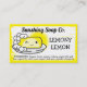 Yellow scheme bath bar in a soap dish with bubbles on this business card for handcrafted or handmade soaps, great for lemon scents, you can change the background colour to reflect combo scents like verbena or blueberry, etc.