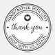 This stylish sticker is the perfect solution to show your appreciation to your customers. It features a clean black and white design, with a double border and concentric circles in the center, along with a beautiful cursive thank-you message and heart symbol to express your gratitude. The top reads "handcrafted with love" and the bottom reads "shop with us again," letting your customers know how much you value their business.