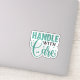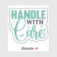 Add a thoughtful touch to your packaging with this elegant “Handle With Care” sticker. Featuring bold teal lettering, graceful script, and sweet heart details, it’s a gentle reminder to treat your creations with kindness. Ideal for handmade goods, boutique brands, and small businesses that value presentation and emotional connection.
