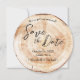 Capture the essence of your rustic-themed wedding with this stunning handlettering script rustic wood print wedding invitation. Inspired by the natural beauty of wood grain, this invitation is designed to resemble a charming wood disc slice that is often found at romantic and rustic weddings.