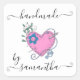 Handmade by Custom Name Stitched Heart and Buttons Square Sticker