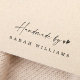 Rubber stamp featuring the text "Handmade by" in a handwritten style script font, two cute hearts and your name below.