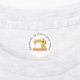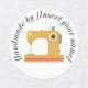 Iron on label features "Handmade by [Insert Your Name Here]" customisable text in modern script font with simple colour sewing machine graphic
