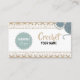 A charming business card for a crochet business, featuring a design with yarn balls, lace, and a textured background, with space for a "Handmade Logo" and "Your Name".