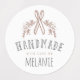 Perfect sticker label set for makers, businesses, or individuals making handmade handcrafted goods & products. Three coordinating sticker designs featuring our hand-drawn florals and scissors graphic sketched artwork with "Handmade with love by" displayed in a stylish handwritten style text pairing. Personalise with your name and monogram. Note: colours can be changed in suit your design preference and brand image. Artwork by Moodthology.