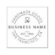 This self-inking stamp is a must-have for any business looking for a personal touch to all their handmade products! This design features your business name in the centre with "handmade goods" and the location in a circle around it. Within the circle in the space above and below your business name is a hand with a heart icon and your established date.
