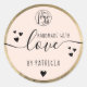 A cool modern and crafty Handmade with love with elegant typography and editable heart. Add your logo on a pastel blush pink and gold foil and black typography.