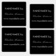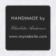 A label for your handmade products or art. Personalise and add your name and website address. Black background, white text. You can change the background colour and the text colour to match your brand. You can choose one colour per row, 4 rows.