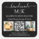 Modern Minimalist Calligraphy Script Business Handmade Square Product Stickers with 2 photos. Black & White or choose your custom colours. Add your website or social media web address to the QR Scan Code. Allow customers to use the scan to access information on your items such as products or services. Perfect for small businesses, company brands, self employed, online sellers and more. Easy to personalise with your monogram initials, business name and information, job title, slogan or even add your logo or personal brand design.