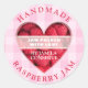 Love heart shape cut into pink gingham with raspberries background. All text is fully customisable.
