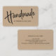 Modern, simple faux kraft business card (no real kraft will be used) , features brush script ''handmade'' in trendy black lettering, name and details.
