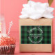 Rustic country, trendy green lumberjack plaid product label stickers for branding- Classic country, black and green buffalo check pattern background. Centre displays name of product displayed in thin, white circle. Company name above in curved, brush script, hand lettering in matching white. Bottom is custom business website address. Perfect for manly soaps for men, for branding your homey family business, country themes, rustic themes, and farmhouse product styles. Click Customise option to change text colours, size, and font styles. We have lots more soap product labels in our Zazzle.com/angela65* shop to mix and match for different soaps.