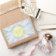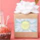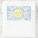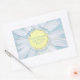 Rustic country, floral daisy product label stickers for branding- Aqua blue background. Adorned with floral watercolor, single daisy with sunny yellow centre. Centre is imprinted with name of product in teal blue. Company name above in curved, teal blue brush script, hand lettering look. Bottom is custom business website address. Perfect for floral soap scents or for branding your family business, country themes, floral themes, and rustic product styles. Click Customise option to change text colours, size, and font styles.
