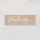 Rustic product insert card with whimsical script "handmade and your name on the front along with all other info in serif font on the back of the card. This mini card series is made in kraft and several other colours for you to choose from. Check out my store for more items from this collection and pair this with custom stamp for your handmade items.