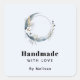 Handmade with Love stickers with a mystical illustration. A dark blue crescent moon with a elegant thin circle outline and white flower blossoms along its edges.