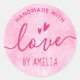 Handmade with love custom name pink classic round sticker