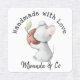 Cute motif and custom text labels; ideal for all those crafty folk who make products for friends or for sale in a small business. Shown here with a cute little mouse hugging an apple image and text which reads Hand Made With Love all this and your name/business name are fully editable at no extra cost.