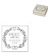 Handmade with love rubber stamp, personalised with your name or business name. This cute design has a doodle drawn wreath with hearts and foliage. It is lettered with skinny font typography and casual handwritten script. A sweet country rustic style design for artisans of handmade gifts and retail products.