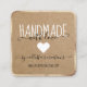 This simple, rustic, and cute business card is perfect for the home crafter, Etsy shop owner, or art fair creative. It features handwritten script font in black and white that says, "Handmade with love by (store name)," on top of a minimal and chic faux printed gold foil border and brown kraft paper background. It's modern, elegant, sweet, and unique; the perfect design for your customers.