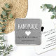 This simple, rustic, and cute business card is perfect for the home crafter, Etsy shop owner, or art fair creative. It features handwritten script font in black and white that says, "Handmade with love by (store name)," on top of a minimal and chic faux printed silver foil border and grey kraft paper background. It's modern, elegant, sweet, and unique; the perfect design for your customers.