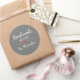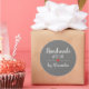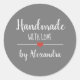 Modern "handmade with love" sticker with a white font on a grey background embellished by a cute red heart. Customise text.