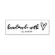 Personalise your homemade products with a custom stamp featuring a whimsical "handmade with" text and a heart illustration coupled with your own elegant script monogram. Choose between different ink colours and check our store for more matching items.