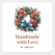 Handmade with Love Pine Wreath with Holly Square Sticker