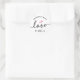 Round stickers with pink hearts, the text "handmade with love" and your custom name on a white or any colour background. The word "love" is written in an elegant calligraphy script font. Use as envelope seals, stickers for gifts and favours, product packaging etc. Follow us on Facebook: @businessstationery for more products, news, sales and more.