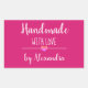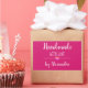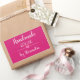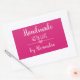 Modern "handmade with love" sticker with a white font on a cardboard background embellished by a heart. Customise text.